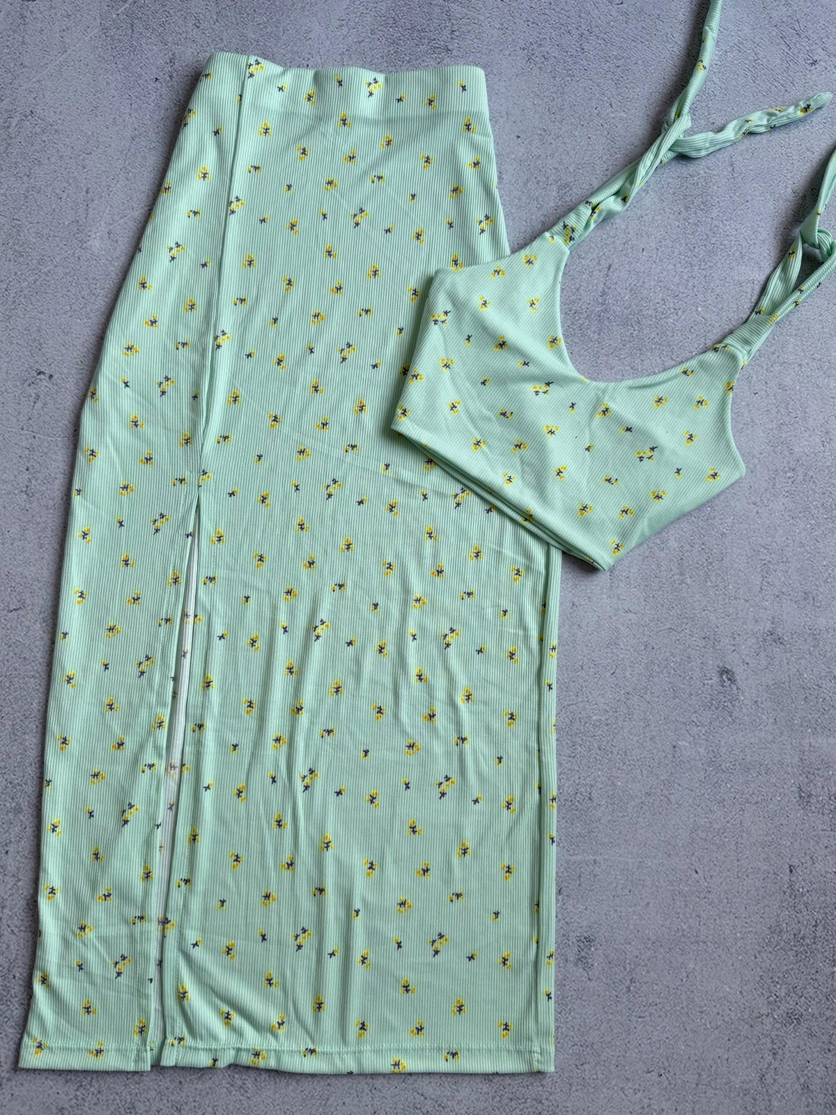 El top es súper adaptable, lo regulan con las tiritas a la medida que más le quede cómodo a ustedes! lo mismo la pollera, son súper tiro alto💕